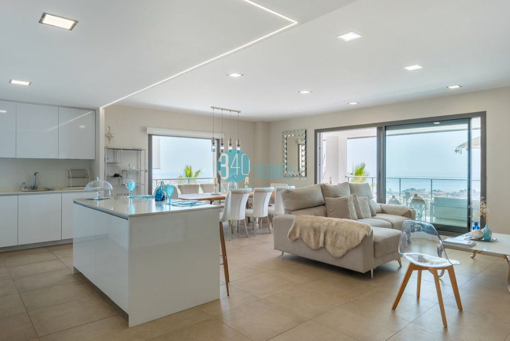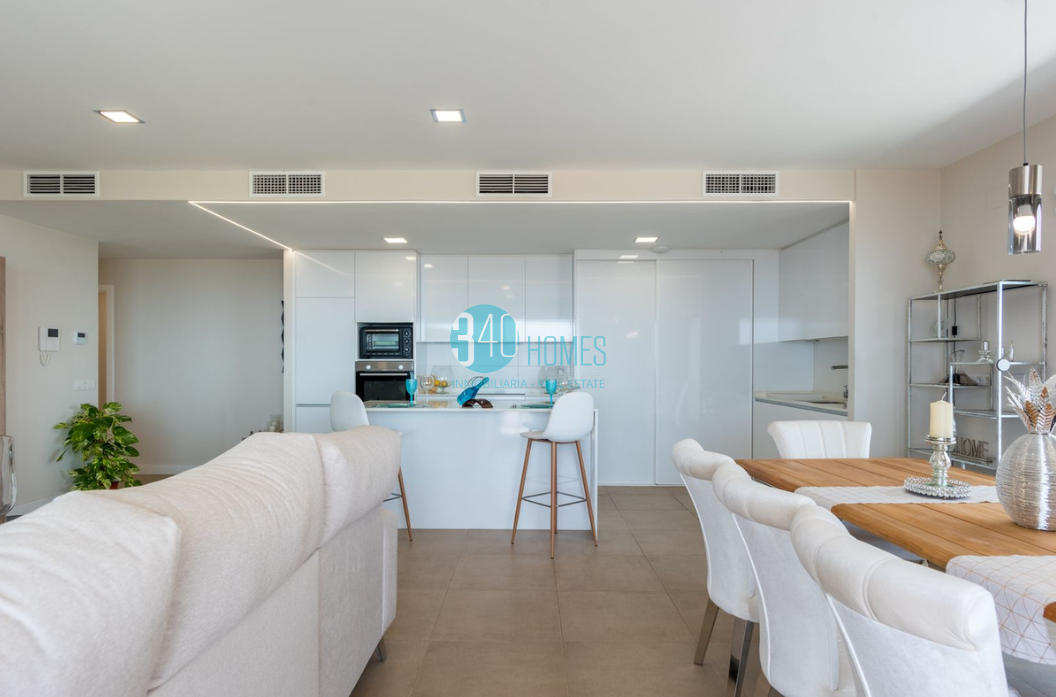 Descubre este maravilloso apartamento que combina elegancia, confort y una ubicación privilegiada. Con 113 m², este hogar cuenta con tres amplios dormitorios, incluyendo una impresionante suite principal con acceso a una terraza privada donde las vistas al mar te robarán el aliento. La cocina abierta y luminosa se fusiona con un área de 50 m², perfecta para disfrutar de momentos inolvidables en familia o con amigos. Dos baños impecables completan este espacio único, destacando el principal con su doble lavabo y ducha a ras del suelo.