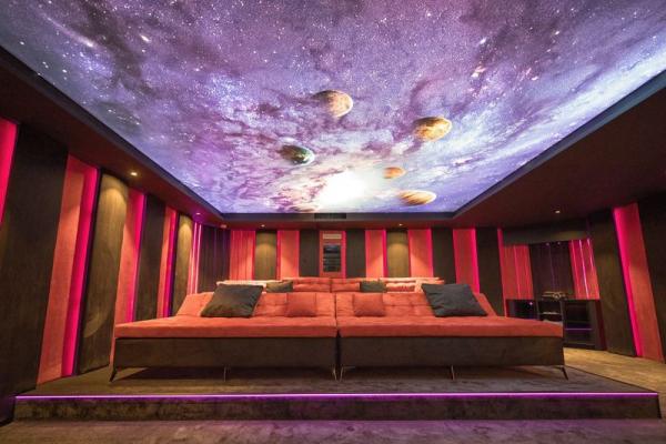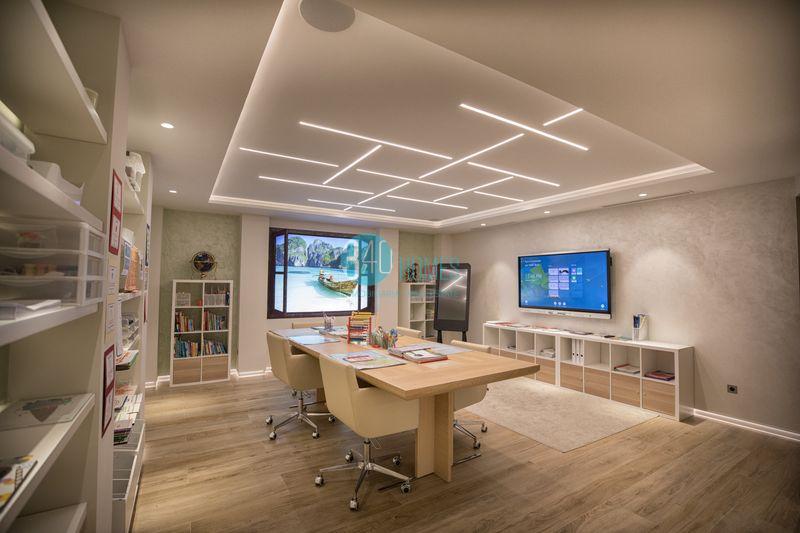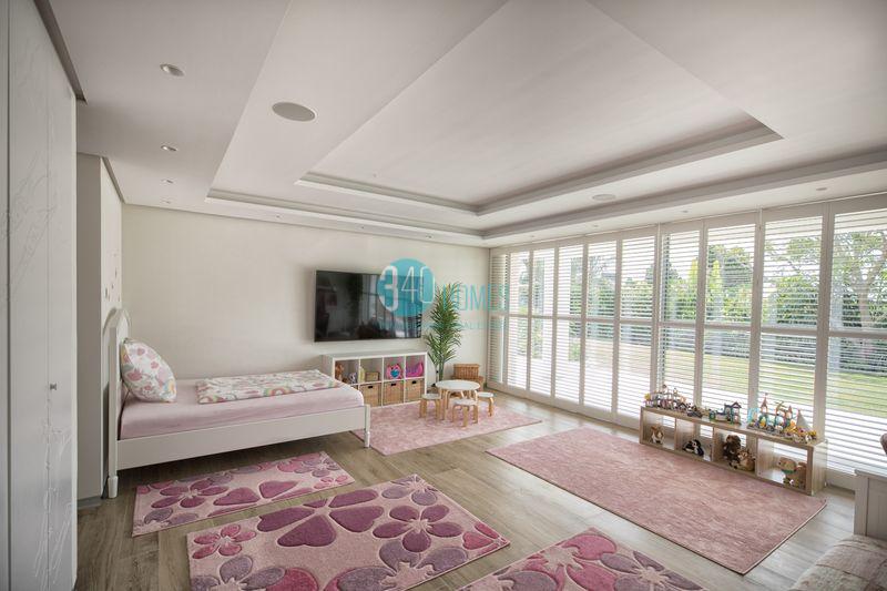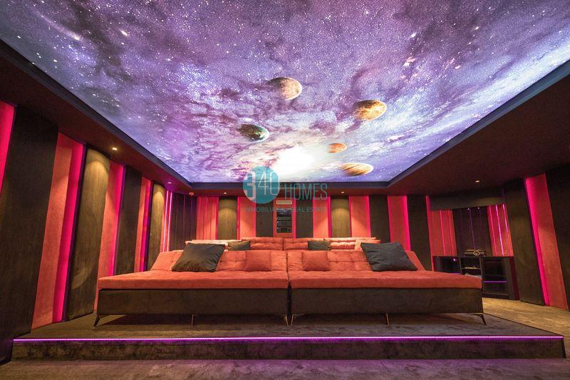 The basement takes the experience to another level, featuring a garage for 6 vehicles, large play areas and storage spaces, a glass-enclosed wine cellar, and a fully equipped workshop—ideal to meet all the needs of a limitless lifestyle. The home is fully equipped with a comprehensive home automation system, including Schneider audio and video distribution, dimmable lighting throughout, motorized blinds and shades, room-by-room climate control, video intercom, irrigation system, scene creation based on schedules, exterior and pool lighting, and more. It also includes a 45 m² cinema room with projection system and surround sound.