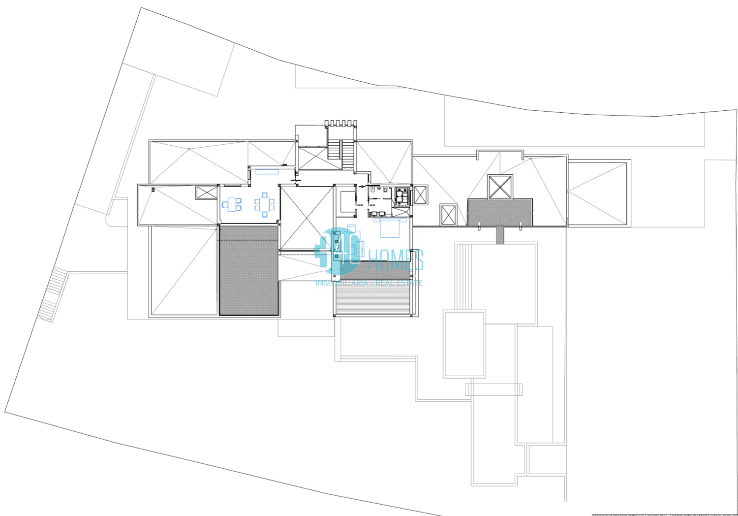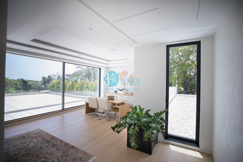This newly built, detached villa features a modern design with elegant lines and sits on an impressive 3,400 m² plot, with 1,500 m² of built space carefully designed down to the last detail to offer comfort, spaciousness, and sophistication.