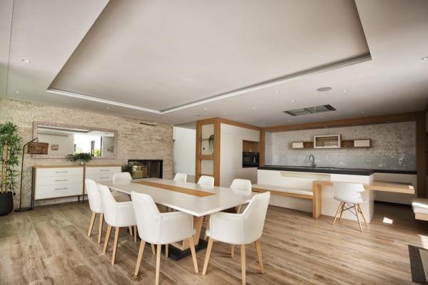 The main residence boasts a spectacular living room, dining area, and lounge with a double-sided fireplace—bright, open spaces that naturally connect with the outdoors. The modern, functional kitchen is designed for both everyday living and large gatherings. The property offers 7 spacious bedrooms, conceived as true private retreats.