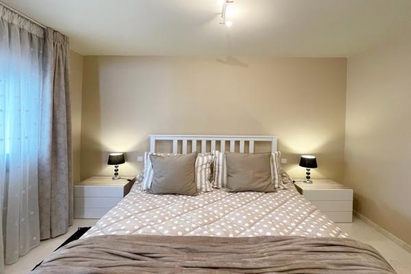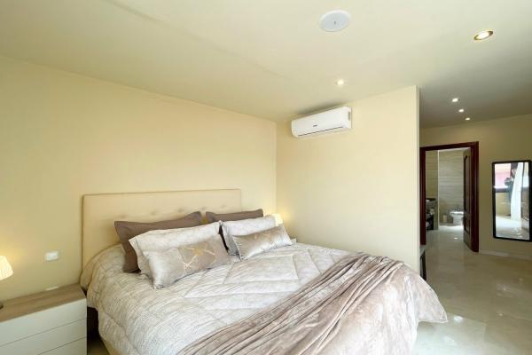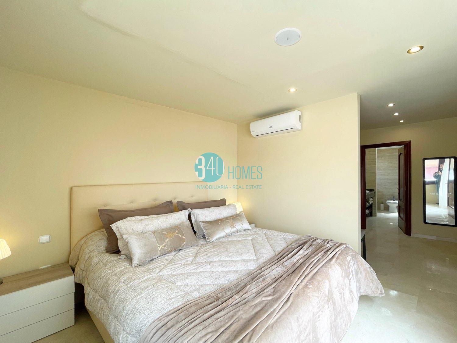 En la planta superior se encuentra un tercer dormitorio con baño en suite, que se convierte en un espacio único gracias a su terraza privada y espectacular solárium, ideal para disfrutar de vistas despejadas y momentos de desconexión.