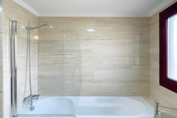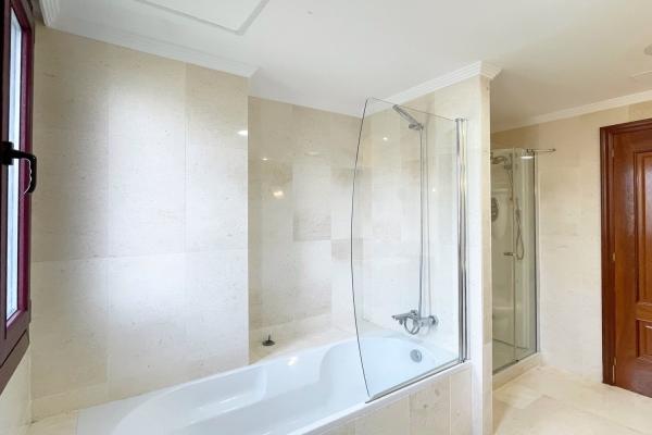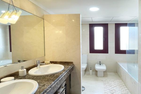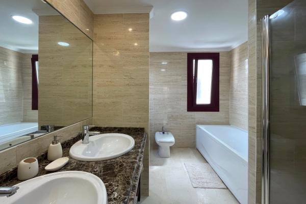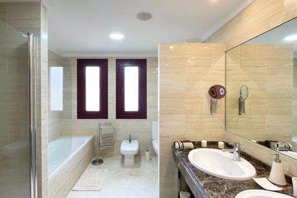 Esta planta dispone además de dos amplios dormitorios, ambos con baño en suite, equipados con bañera y ducha, ofreciendo privacidad y confort.