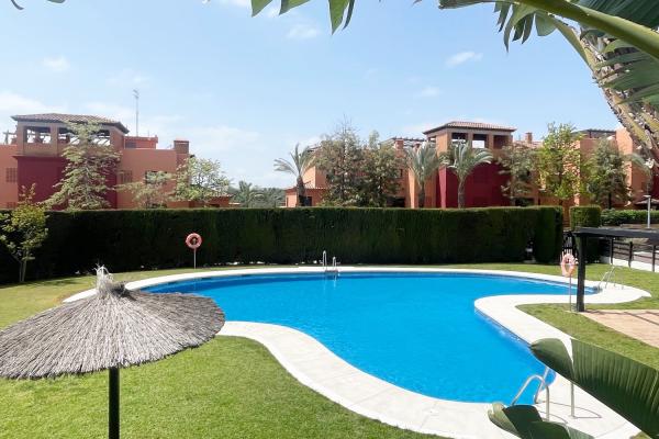 El residencial ofrece excelentes zonas comunes con cuidados jardines y tres piscinas, en un entorno tranquilo junto a campos de golf y a tan solo 3 minutos en coche de la playa.