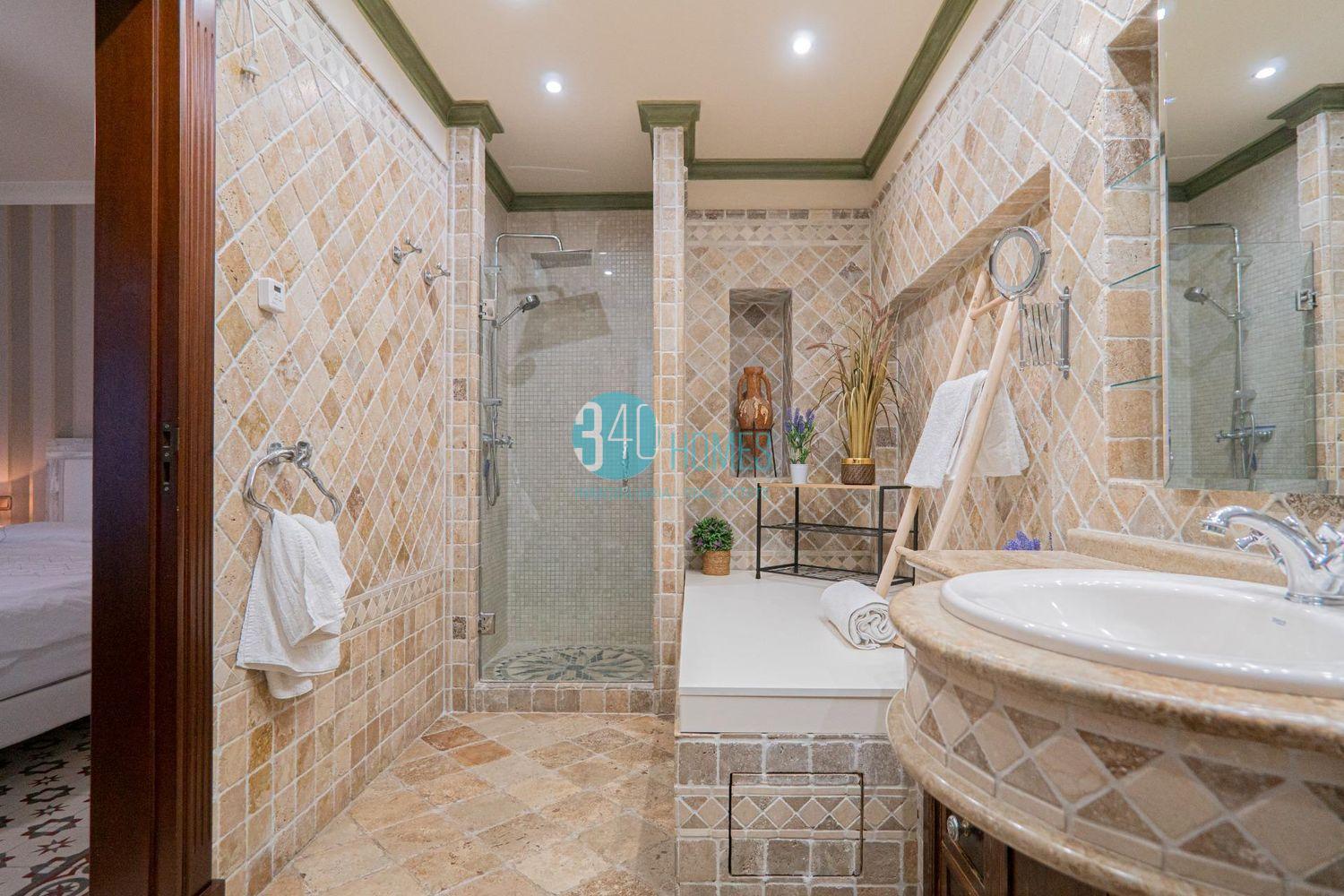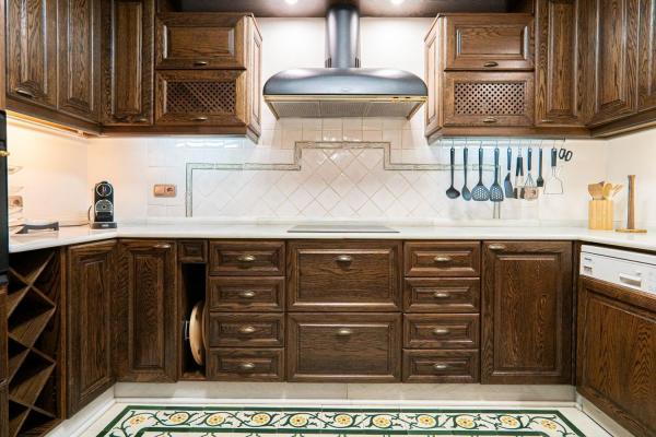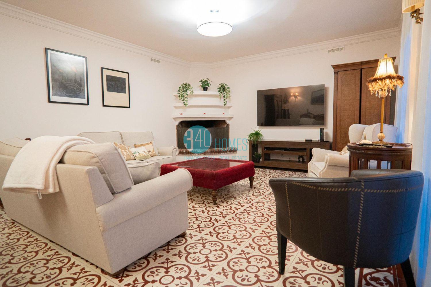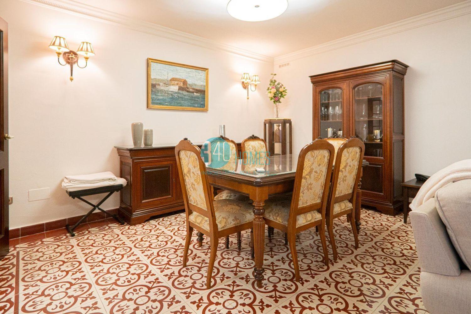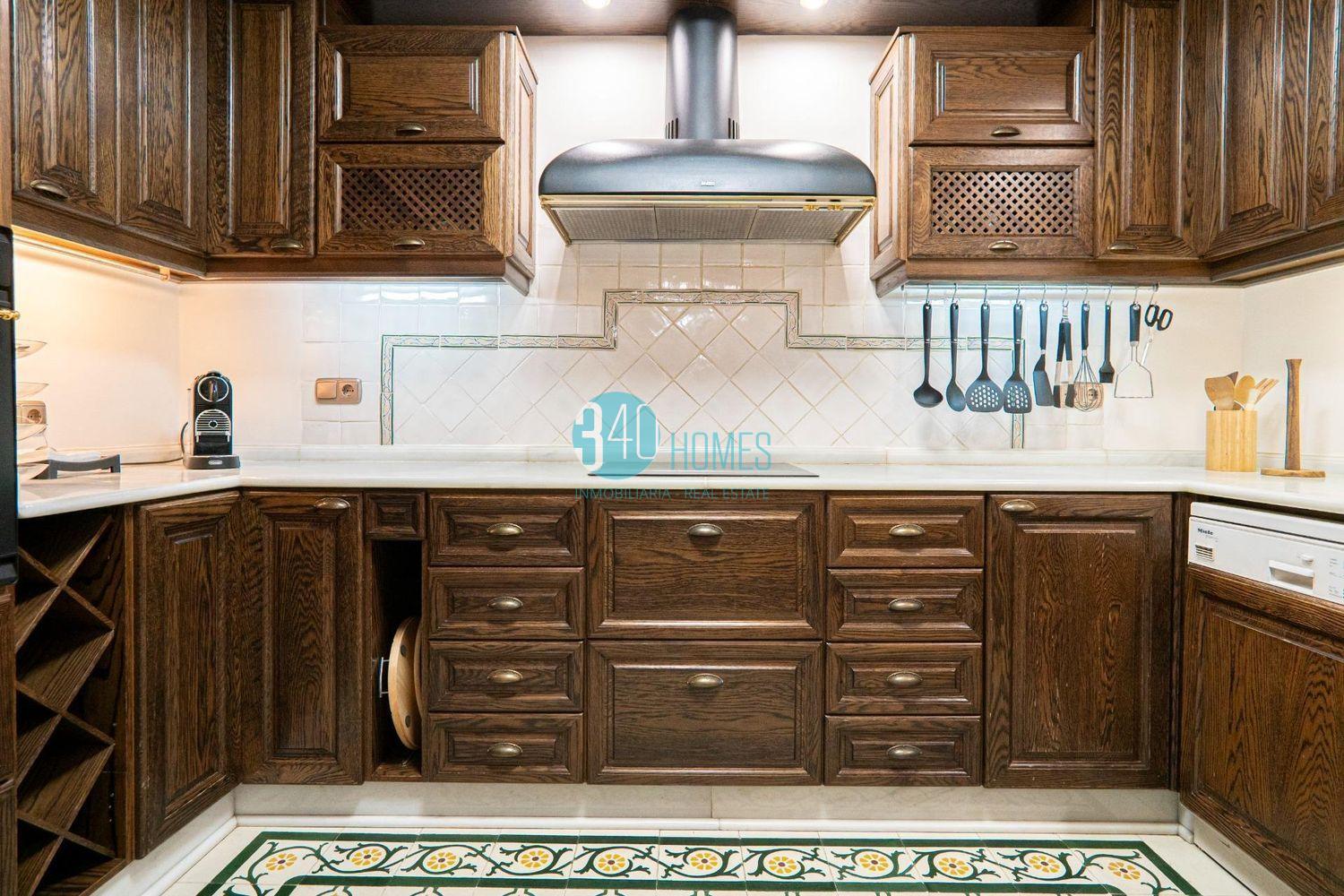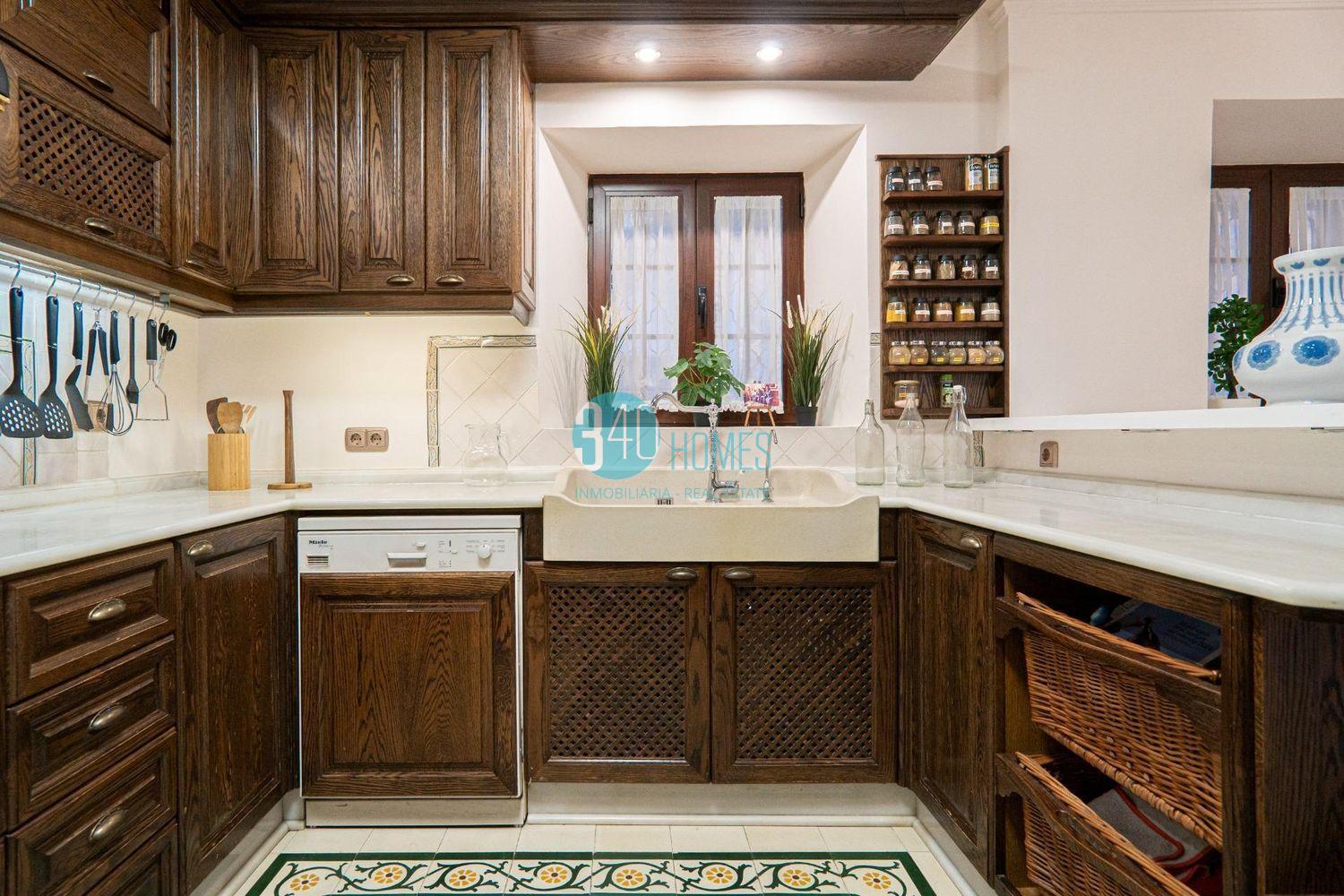 La vivienda dispone de un elegante y amplio salón-comedor de 40 m² con chimenea, un espacio cálido y distinguido ideal tanto para la vida familiar como para recibir invitados. La cocina independiente, realizada en madera maciza de roble, incorpora encimera y fregadero de mármol Macael, reflejando calidad, tradición y sofisticación. La propiedad cuenta con cinco dormitorios, todos equipados con armarios empotrados, aire acondicionado y suelo radiante, destacando especialmente el dormitorio principal, que ofrece un exclusivo vestidor de madera de caoba y un baño en suite con ducha y bañera de hidromasaje, creando un auténtico espacio de bienestar privado.