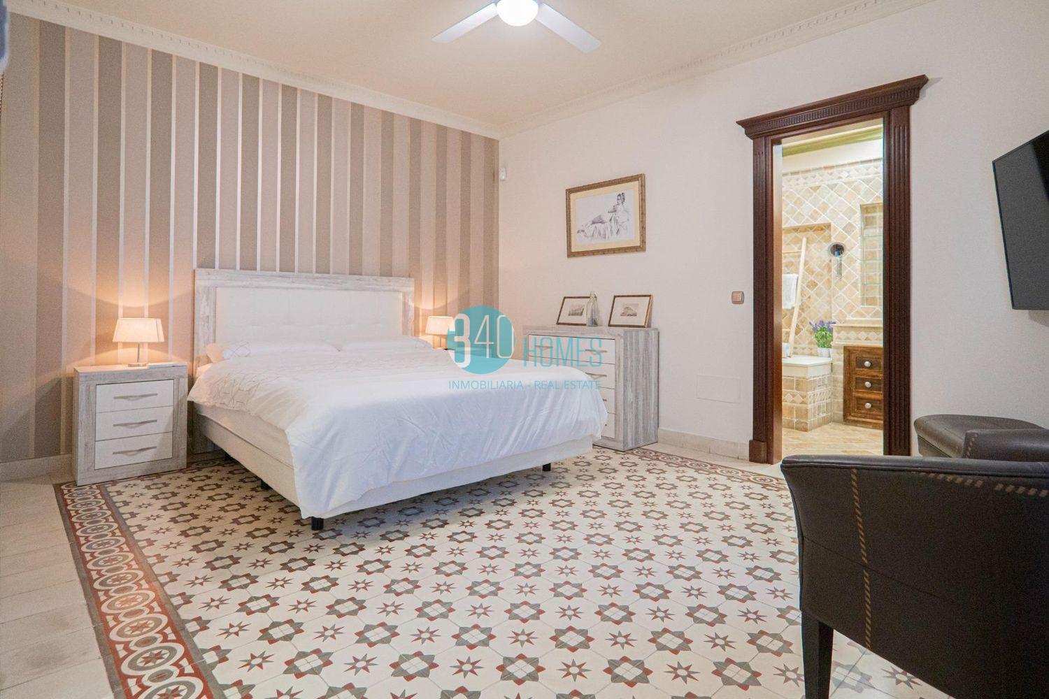 En pleno centro histórico, en una tranquila y encantadora calle peatonal y a tan solo 200 metros del mar, se encuentra esta extraordinaria villa de lujo completamente reformada, una auténtica joya arquitectónica del siglo XIX que combina el encanto señorial andaluz con el máximo confort contemporáneo. La propiedad recibe con un espectacular patio central de estilo sevillano, presidido por rejas originales del siglo XVIII y un impresionante artesonado de madera noble tallada, elementos únicos que aportan carácter, historia y una atmósfera incomparable.